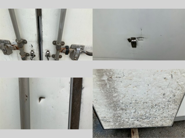 | 備考 | リア扉:ゴム切れ,穴,凹 リア扉から見て左面:キズ,凹, リア扉から見て右面:割れ,凹 内装:凹多数 鍵無し リア扉:雨漏り有 |