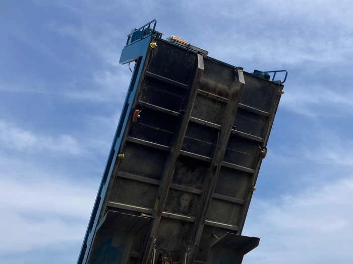 上物は極東製 荷台には積載物の落下、飛散を防げる自動シート付