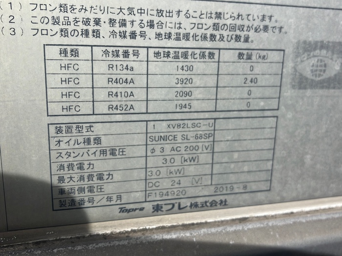 ☆☆【東プレ】【低温冷凍機】【後輪エアサス】☆☆
